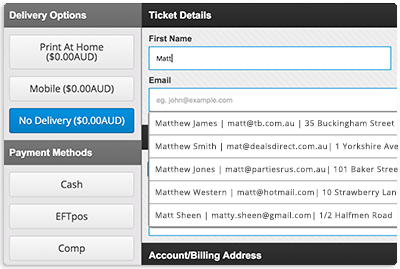 Box office automatically searches your existing customer database for matches to reduce double entry of attendee info.