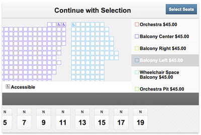 Box Office supports both GA and reserved seating events. Select individual seats for customers on a detailed seating chart.