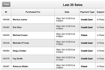 Keep consistent records in your account for every transaction: online ticket purchases, orders over the phone, and cash, cheque, or credit sales at the door.